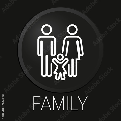 Family minimal vector line icon on 3D button isolated on black background. Premium Vector.