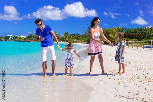 Family of four with two kids during beach vacation