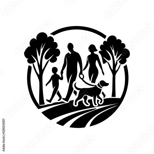 Family Walking with Dog in Nature