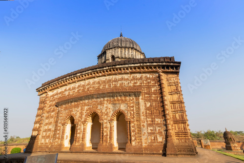 Famous terracotta (fired clay of a brownish-red colour, used as ornamental building material) artworks at Lalji Temple, Bishnupur, West Bengal, India. It is popular UNESCO heritage site of India.