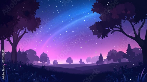 Fantasy landscape with aurora borealis in the night sky illustration