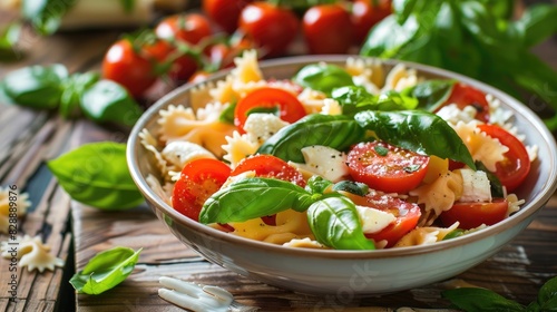 Farfalle salad with tomatoes mozzarella and basil