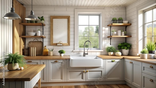 Farmhouse Kitchen Inspiration: A Mockup Poster Frame Above the Sink generative AI