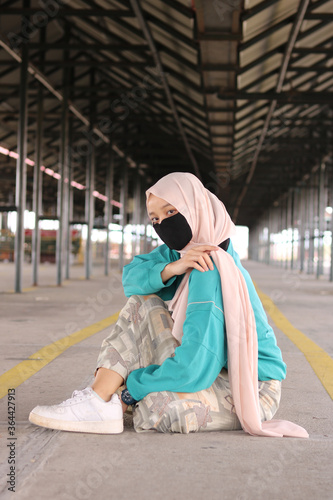 Fashion portrait of young beautiful asian muslim woman with wearing hijab.