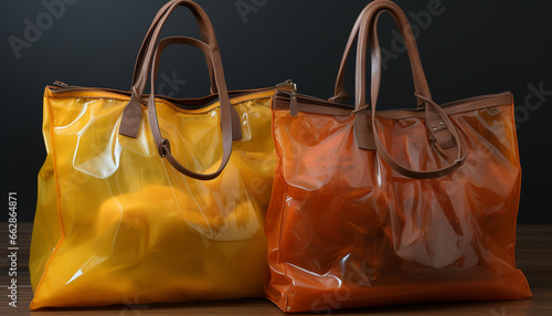 Fashionable women carrying a leather tote bag with shiny decoration generated by AI