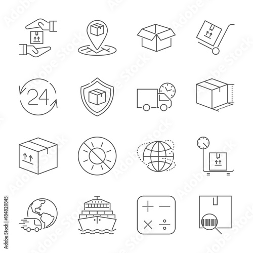 Fast delivery and quality service transportation. Different icons for logistics theme. Vector icons for logistic company. Editable Stroke