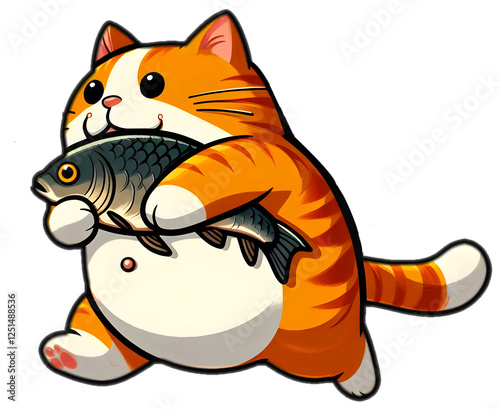 Fat Cat Running Holding Big Fish