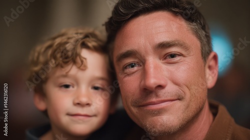 father and child sharing tender moment gentle smiles and blurred background with ample copy space
