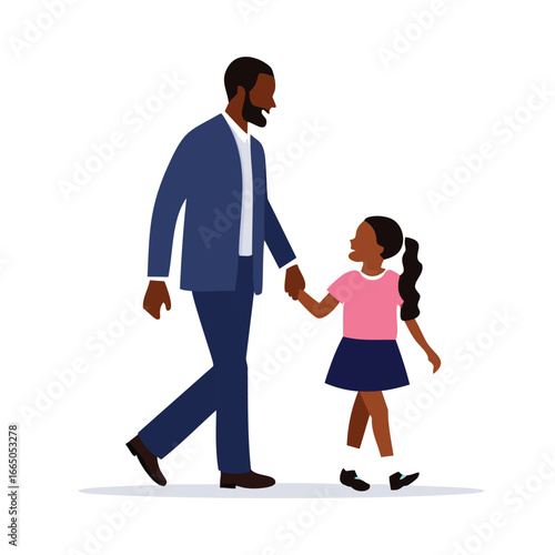Father and daughter walking hand in hand holding hands blue suit
