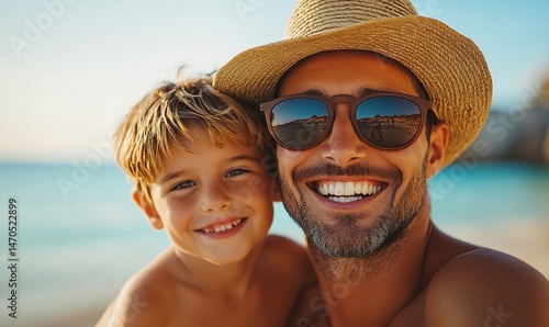 Father and son enjoying summer holidays at the beach