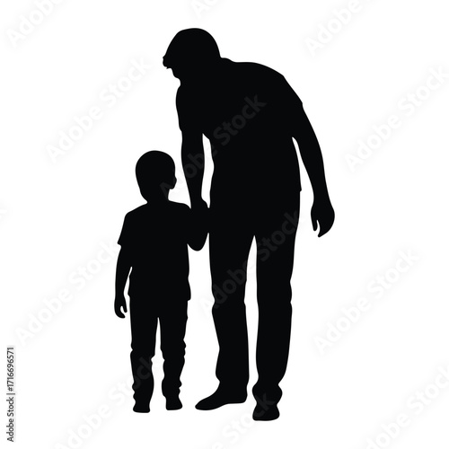 Father and son holding hands silhouette black and white