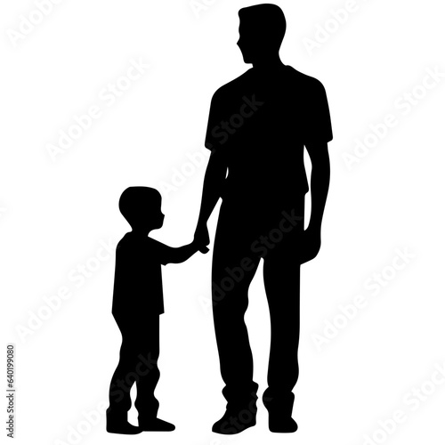 Father and son standing, silhouette vector