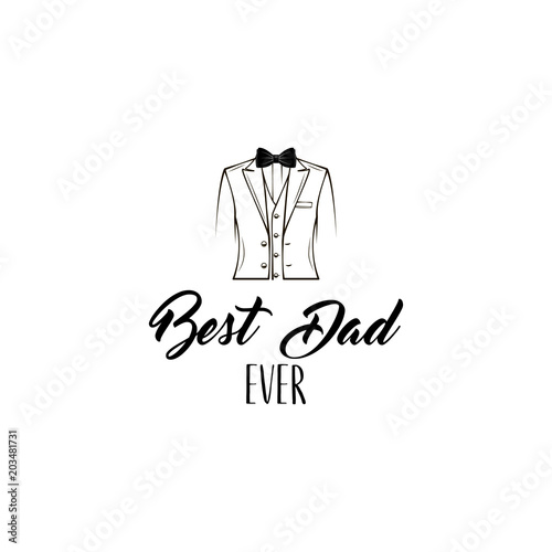 Fathers Day. Bow tie, tuxedo. Greeting card. Best dad ever inscription. Vector.