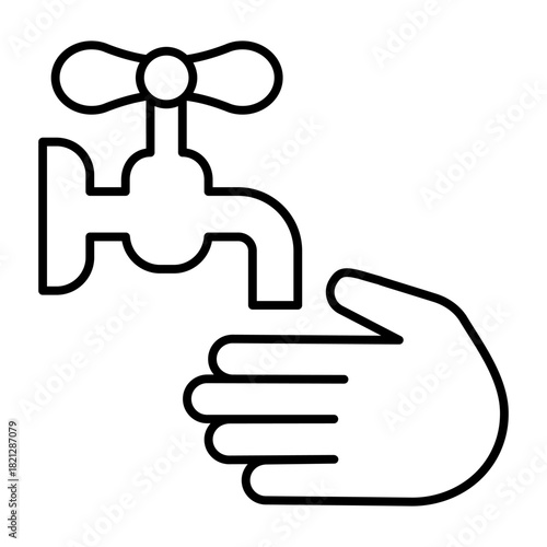 Faucet and hand thin line icon, body hygiene concept. Vector graphics. Hand with faucet tap, washing hands sign on white background, style icon mobile or web design.