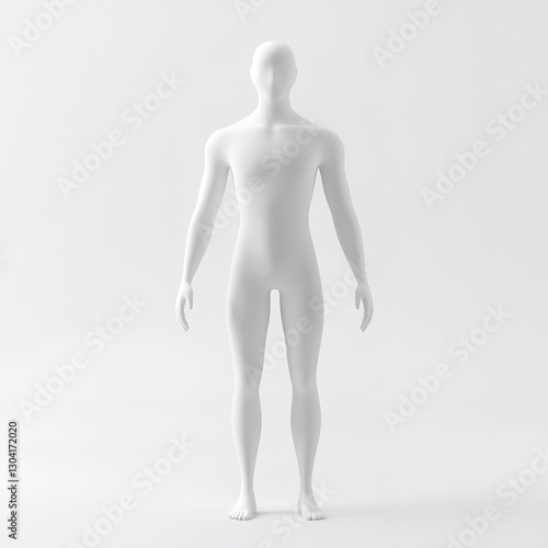Featureless 3D-Rendered White Humanoid Character Standing Upright with Plain Background