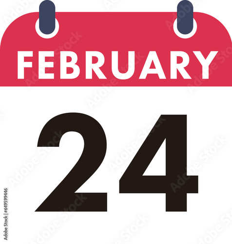 February 24 Calendar Icon. Flat style. Date, day and month.