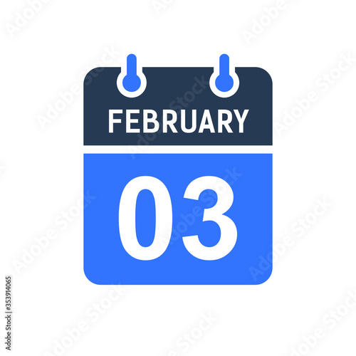 February 3 Calendar Date Icon, Event Date Icon, Calendar Date, Icon Design Vector Graphic