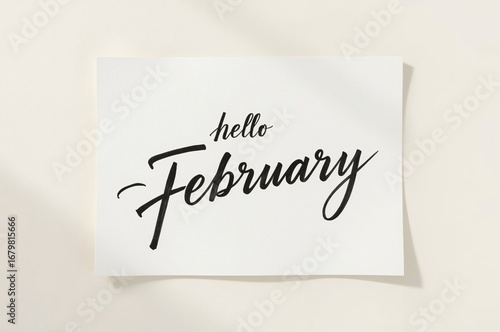 February greeting card, minimal design, shadow background, winter