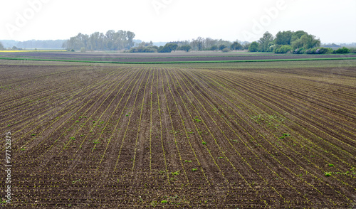 Feld mit keimender Saat