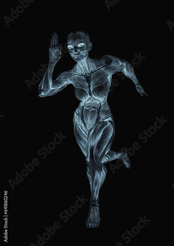 female bodybuilder is running in white background