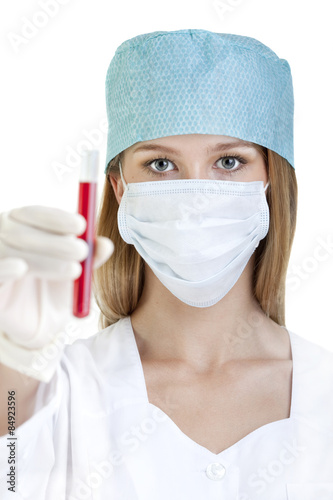 Female Doctor Showing the Test Tube with Blood