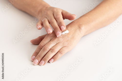 female hands applying an ointment