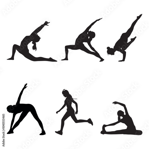 Female silhouettes in sports and stretching pose. Yoga or meditation Silhouettes Vector illustration. Gym exercise trendy yoga concepts Vector Silhouettes.