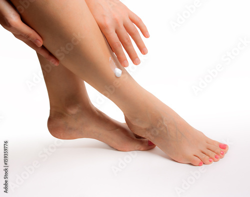 Female slender beautiful legs isolated on white background