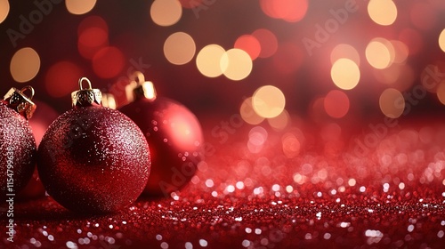 Festive Abstract Background with Christmas Bokeh Lights and Ornaments