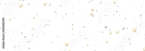 Festive background with gold and silver stars and snowflakes. Perfect for holidays.