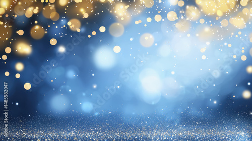 Festive blue and gold christmas background with sparkling lights, creating a magical and joyful holiday atmosphere
