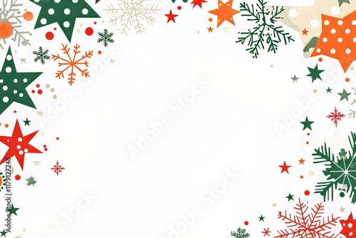 Festive border design featuring colorful stars and snowflakes.