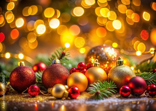 Festive Christmas & New Year Bokeh Lights, Ornaments, and Decorations