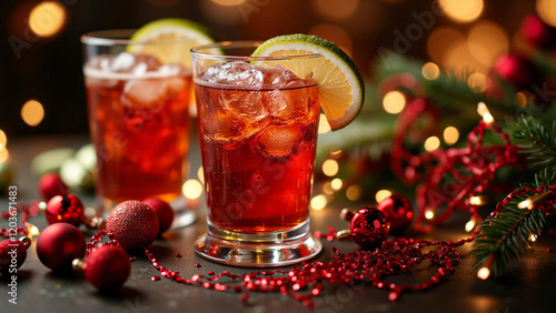 Festive Christmas drinks surrounded by holiday decorations, Christmas, drinks, festive, decorations, holidays, celebration