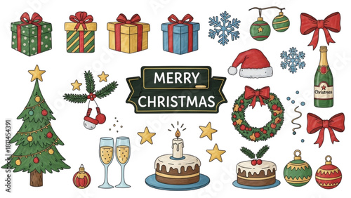 Festive Christmas Icons A Collection of Holiday Elements and Decorations