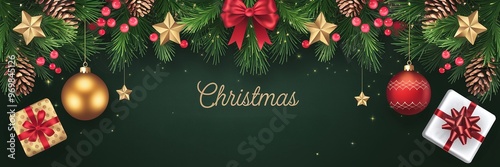 Festive Christmas Scene with Pine Branches and Golden Ornaments Widescreen