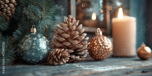 Festive Christmas Table Decor Pine Cones Ornaments Candle