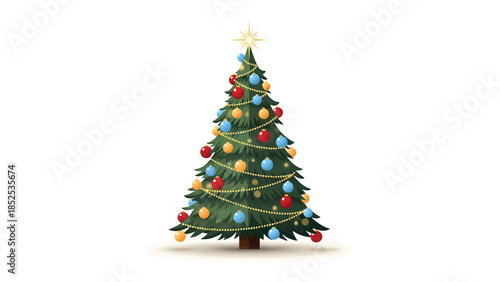 Festive Christmas Tree Decorated With Colorful Ornaments And Star