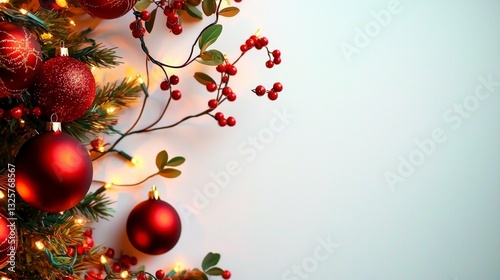 Festive Christmas Tree Ornaments Red Baubles Lights Berries
