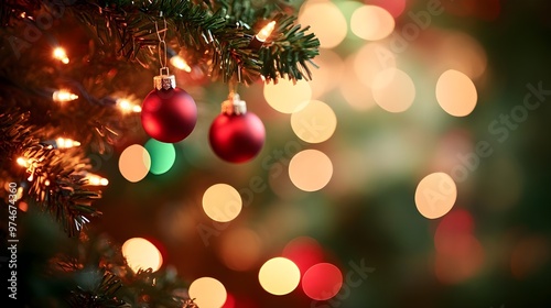 Festive Christmas Tree Ornaments with Blurred Lights