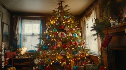 Festive Christmas Tree with Colorful Ornaments and Lights