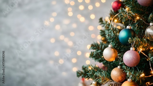 Festive Christmas Tree with Decorated Ornaments and Lights