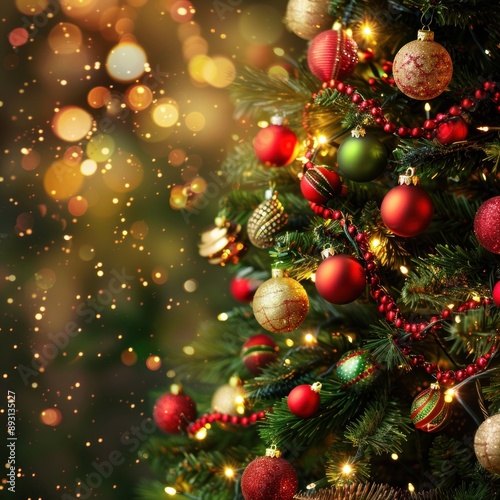 Festive Christmas Tree with Red and Gold Ornaments
