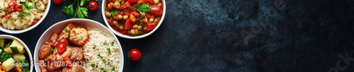 Festive dining experience with bowls of rice, meat, and vegetables for celebration