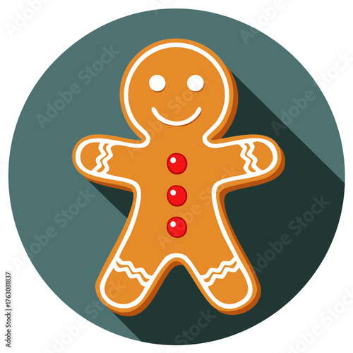 Festive Gingerbread Man Cookie Flat Design Icon with Long Shadow for Christmas Holiday Season