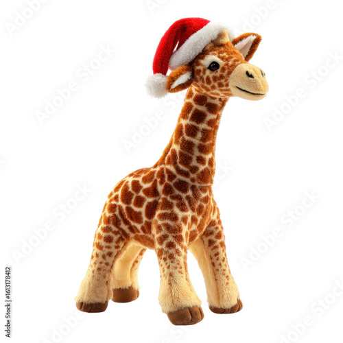 Festive giraffe plush toy holiday wonderland toy photography cheerful environment close-up fun concept