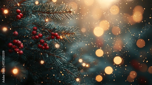 Festive green holiday background with a Christmas theme