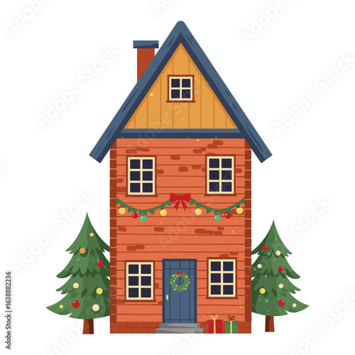 Festive house with christmas decorations and trees – stock vector flat illustration