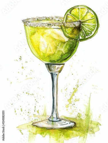 Festive Margarita Art: Watercolor, Lime, Salt Rim Design