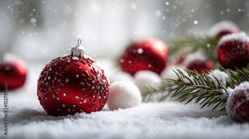 Festive Red Christmas Ornament in Fresh Snow